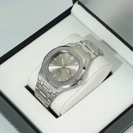 Diese elegante Herrenuhr wurde für Männer geschaffen, die Klarheit, Charakter und Qualität schätzen. Das massive Edelstahlgehäuse in Kombination mit dem markanten Gliederarmband verleiht der LYON eine kraftvolle Präsenz – perfekt für Alltag, Business und besondere Anlässe.