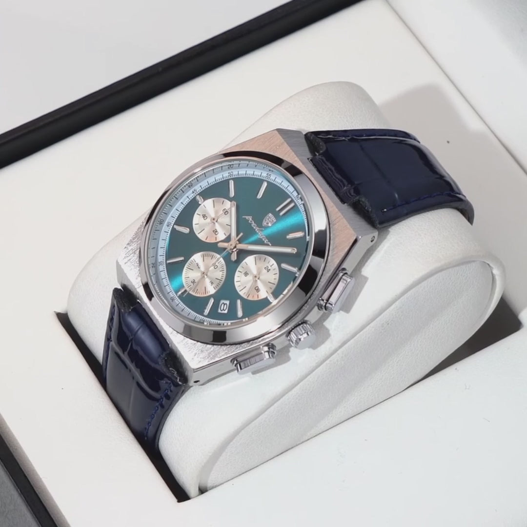 Funktionale Totalisatoren, feine Details und ein zuverlässiges Quarzwerk sorgen für Übersicht, Stärke und Stil. Technisch durchdacht. Sichtbar präzise.